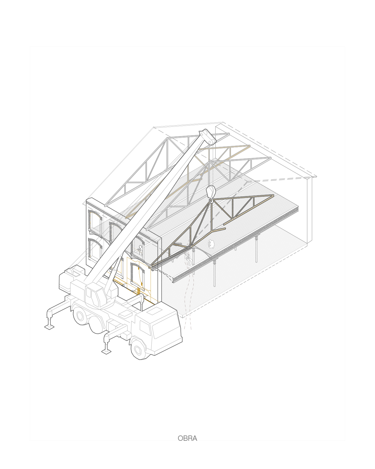 La actuación contempla la rehabilitación integral de la envolvente (fachadas y cubierta), la restauración patrimonial y los refuerzos estructurales necesarios. El edificio presenta un estado de deterioro avanzado, con sectores de la cubierta hundidos y aberturas en mal estado. El proyecto incluye trabajos de desmontaje y demolición interiores para dejar el espacio vacío y preparado para futuros usos. En los próximos años, el edificio acogerá una residencia para personas mayores. Por lo tanto, el proyecto busca dejar los espacios libres con el fin de facilitar las intervenciones posteriores.Any: 2024 - in progress