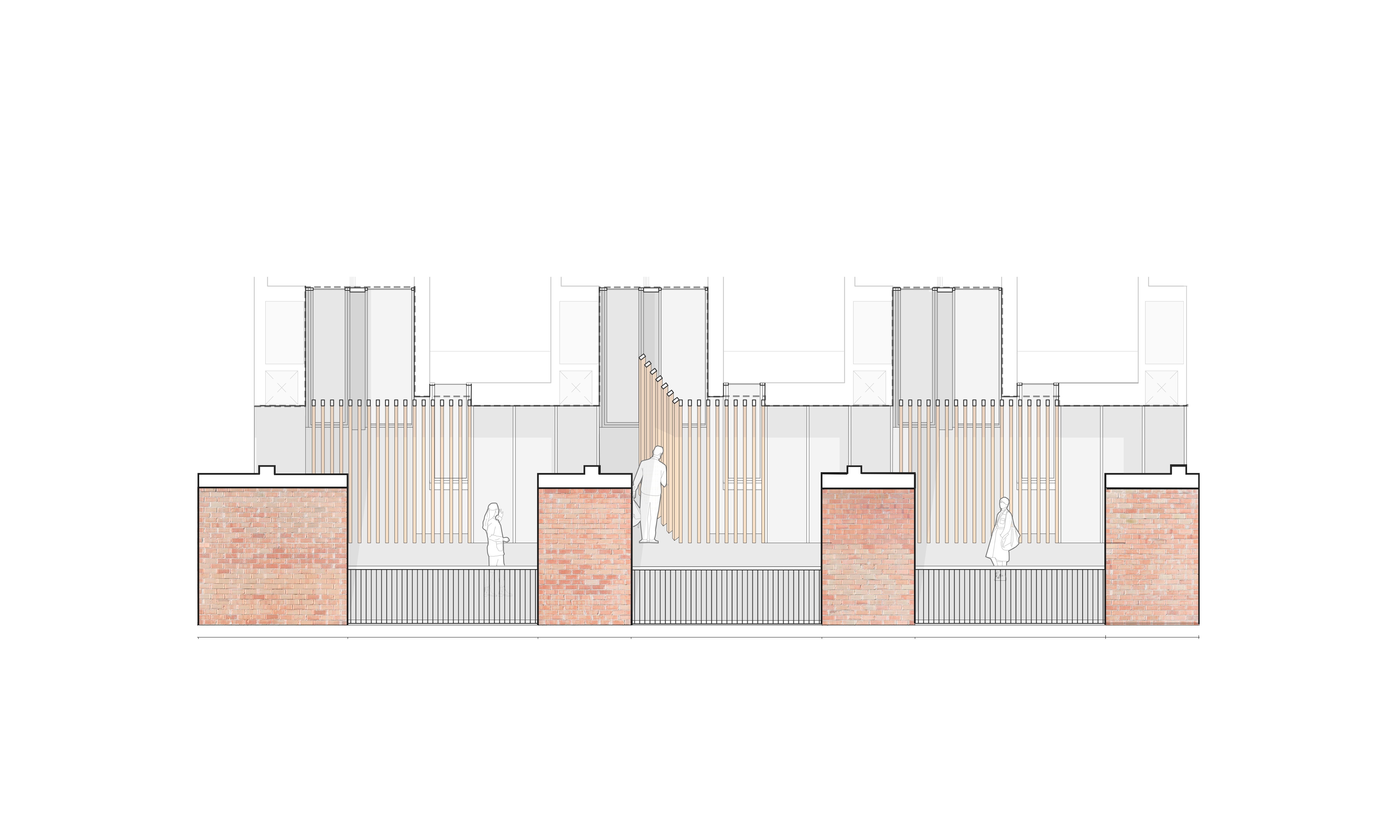 Distribution is solved without interior patios and generally ventilating the main room and the principle bedroom to south-west facade and the kitchen and the other bedroom to the exterior corridor. A little access space allows each housing unit to personalize a set back space formed by wooden lattices. In the carpentry design, superior bands are located to ease the good initial dwellings dispositions to cross-ventilation.